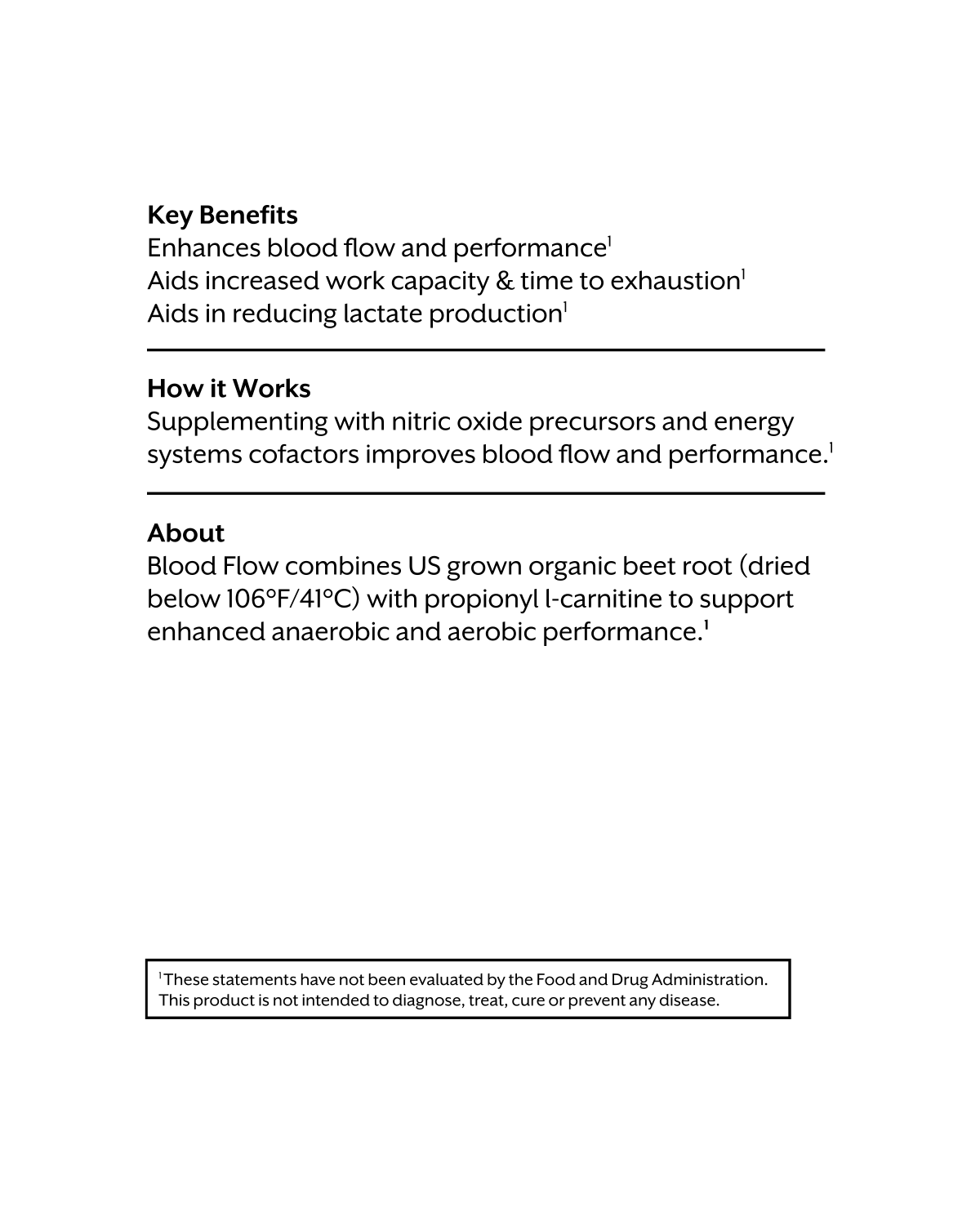 Blood Flow combines US grown organic beet root (dried below 106°F/41°C) with propionyl l-carnitine to support enhanced anaerobic and aerobic performance.¹