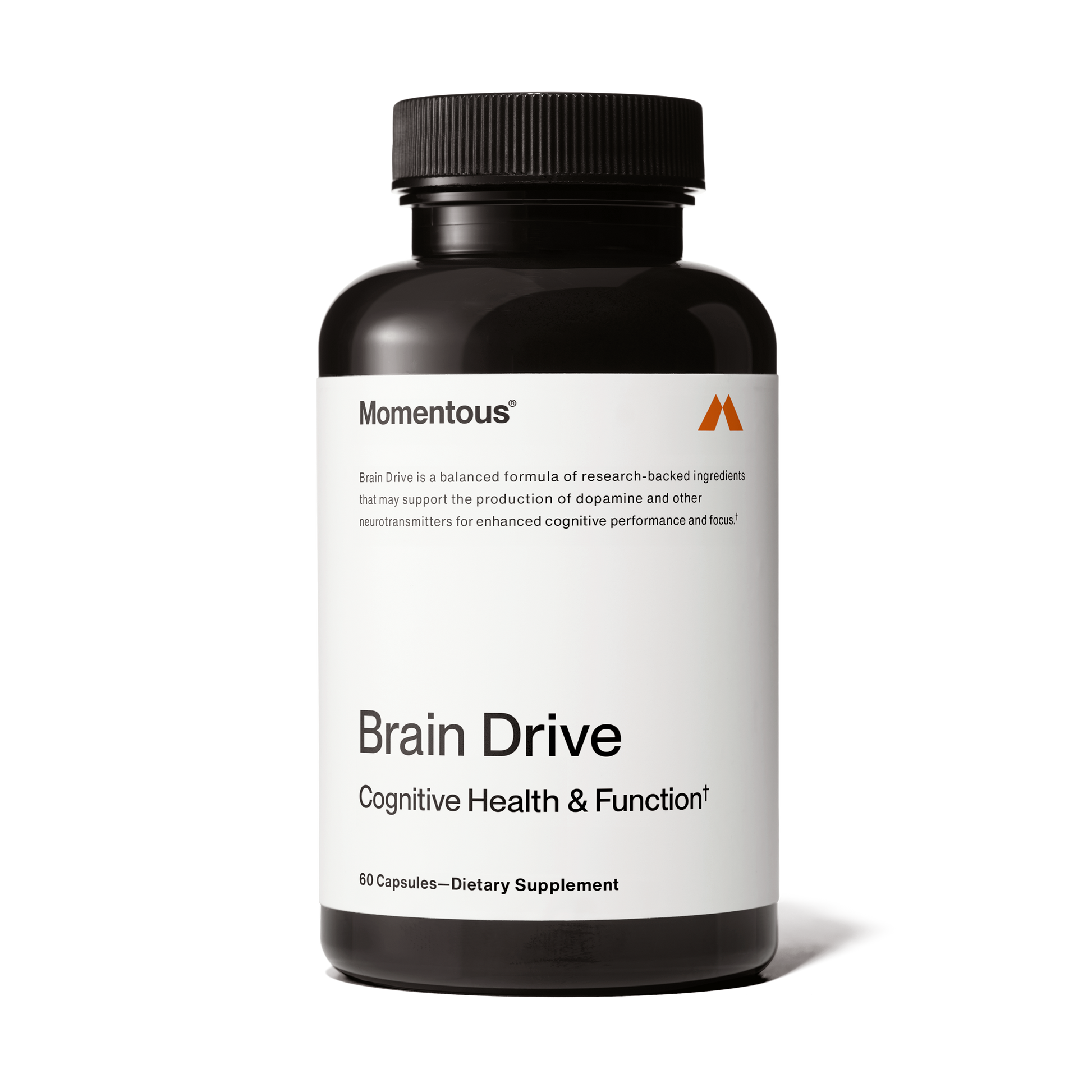 Brain Drive is a daily nootropic formula designed to enhance mental clarity, motivation, and long-term brain health. It combines Acetyl L-Carnitine, Bacopa Monnieri, Tyrosine, and B vitamins—ingredients that support neurotransmitter production, blood flow, and cognitive resilience under stress.