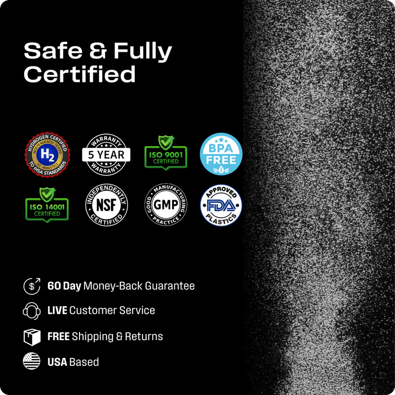 - Advanced SPE/PEM Technology: Generates up to 2.5 ppm of pure molecular hydrogen without chlorine or ozone byproducts.
