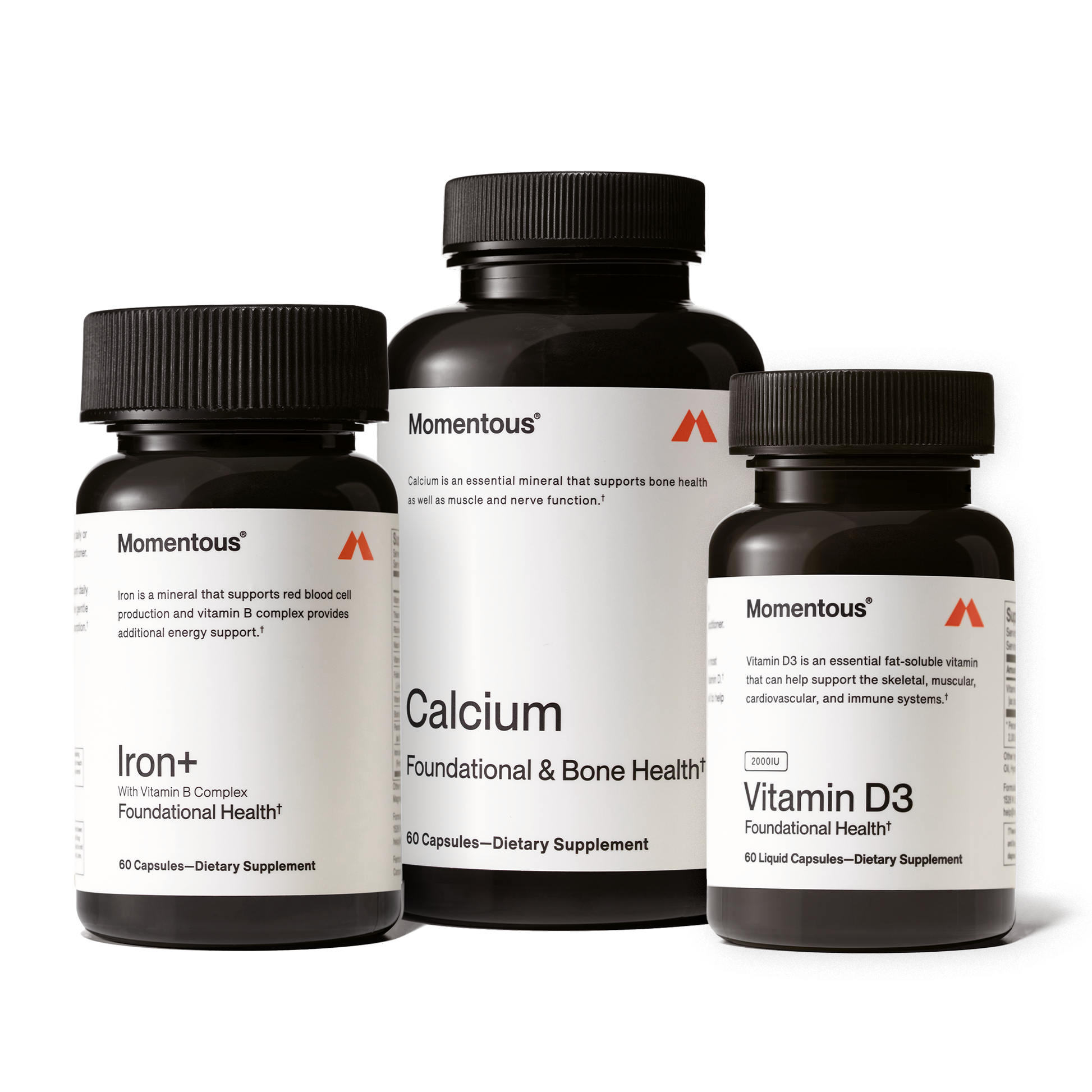 The Women’s Three is a daily health system comprised of Iron+, Calcium, and Vitamin D3 2000IU and developed in collaboration with renowned expert Dr. Stacy Sims specifically for female biology—with a targeted AM/PM dosing protocol to maximize absorption in supporting daily energy, maintaining strong, healthy bones, and promoting long-term resilience.