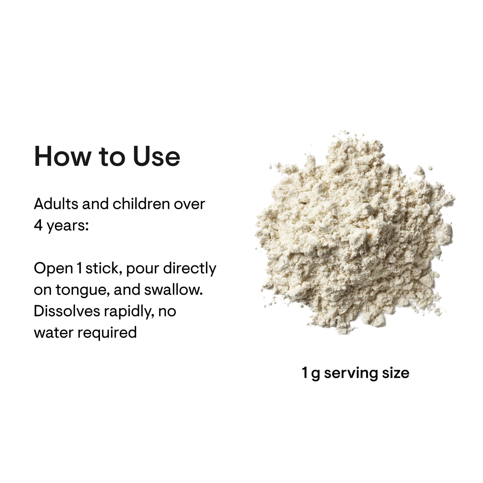 Adults and children over 4: Open 1 stick, pour directly on tongue, and swallow. No water required. Dissolves rapidly.